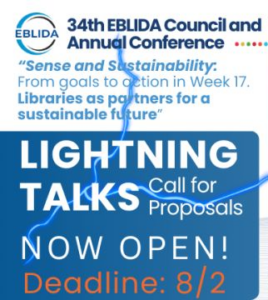 EBLIDA invites library professionals and library associations to contribute to this year’s Annual Conference (20-22 April in Prague) Lightning Talks session.This year Conference theme Sense and sustainability: From goals to